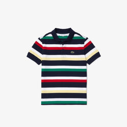 تيشيرت بولو بيكيه قطن مخطط بشعار لاكوست للأولاد
