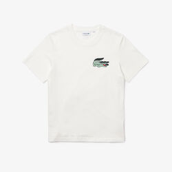 تيشيرت كلاسيكي قطن بفتحة رقبة مستديرة ورقعة التمساح للرجال
