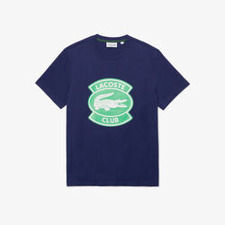 تي شيرت قطني للرجال بفتحة رقبة مستديرة وشارة Lacoste Club بالحجم الكبير