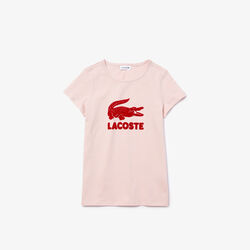 تي شيرت قطن مع طبعات مميزة لشعار العلامة التجارية للبنات