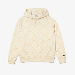 سويت شيرت قطني للجنسين بغطاء رأس وقصة فضفاضة ومونوغرام مجموعة Lacoste Live