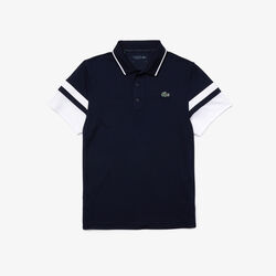 قميص بولو للتنس من البيكيه المسامي للرجال مع أكمام مقلمة مجموعة Lacoste Sport