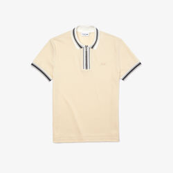 قميص بولو مخطط للرجال قصة عادية وفتحة رقبة بسحاب