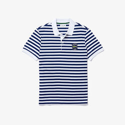 قميص بولو مقلم من بيكيه القطن للرجال بقصة عادية وشارة