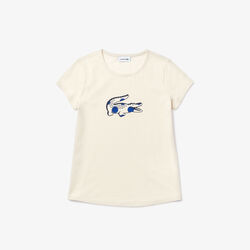 قميص تي-شيرت قطني مطبوع بفتحة رقبة مستديرة للبنات