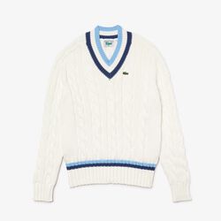 كنزة من حياكة الكابل للجنسين بفتحة رقبة على شكل حرف V وأطراف مقلمة