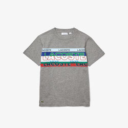 تيشيرت قطن بفتحة رقبة مستديرة وطبعة شعار لاكوست للأولاد