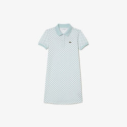 فستان بولو لاكوست قطن عضوي بنقشة مربعات للبنات