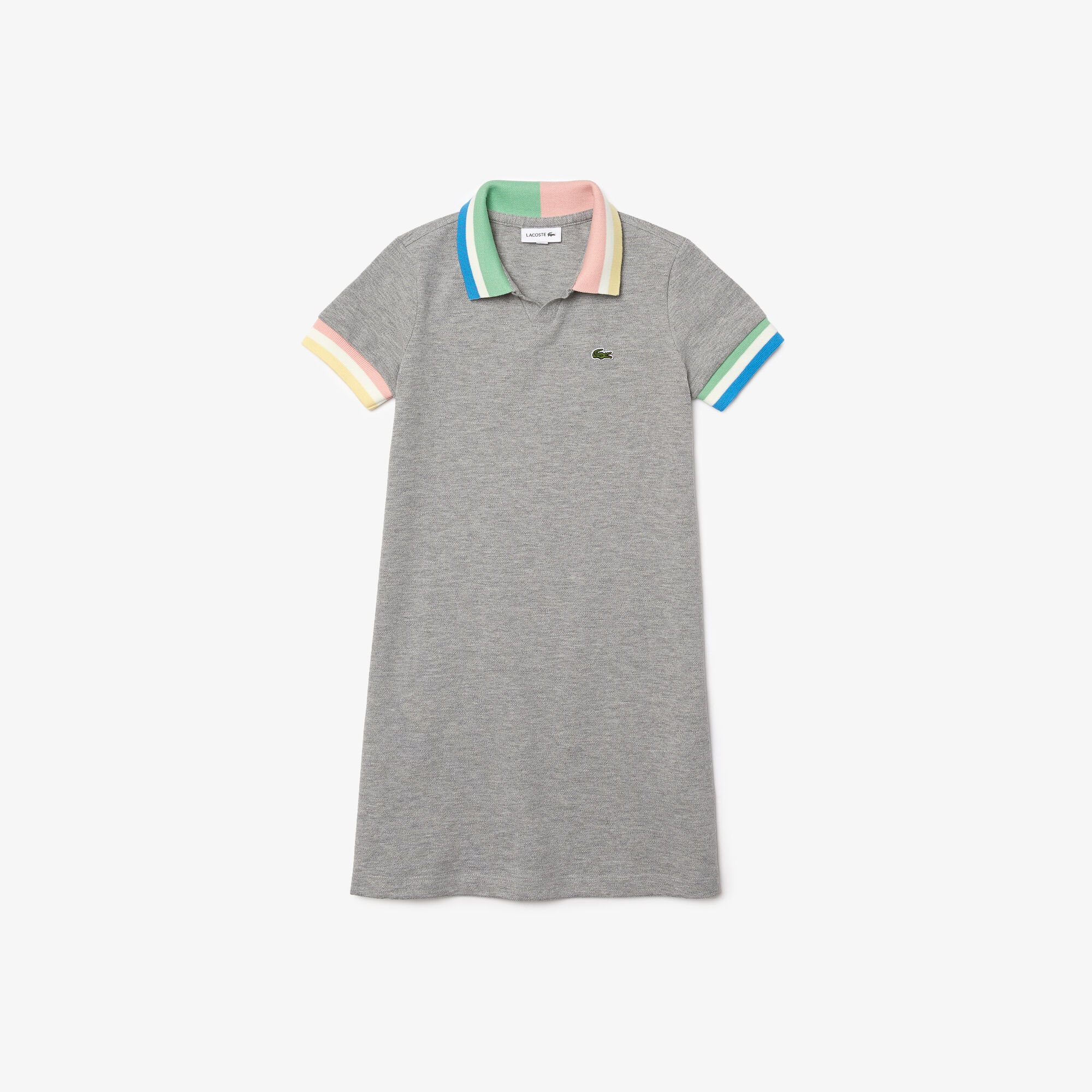 فستان بولو بيكيه القطن مع تفاصيل بكتل لونية للبنات