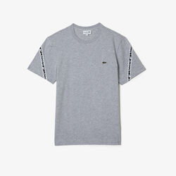 تيشيرت لاكوست بقصة عادية وأشرطة مطبوعة للرجال