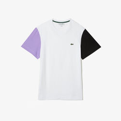 تيشيرت لاكوست مقسم بألوان قطن جيرسيه بقصة عادية للرجال
