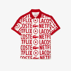 تيشيرت بولو قطن عضوي مطبوع بقصة فضفاضة للرجال مجموعة Lacoste X Netflix
