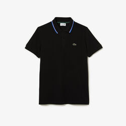 تيشيرت بولو لاكوست قطن بيكيه بيتي بياقة مخططة وقصة عادية للرجال