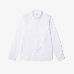 قميص قطن بوبلين مطاطي بصف أزرار خفي وقصة ضيقة للرجال