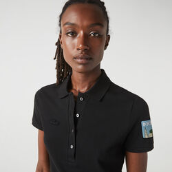 تيشيرت بولو لاكوست قطن بيكيه مطاطي بقصة ضيقة للنساء