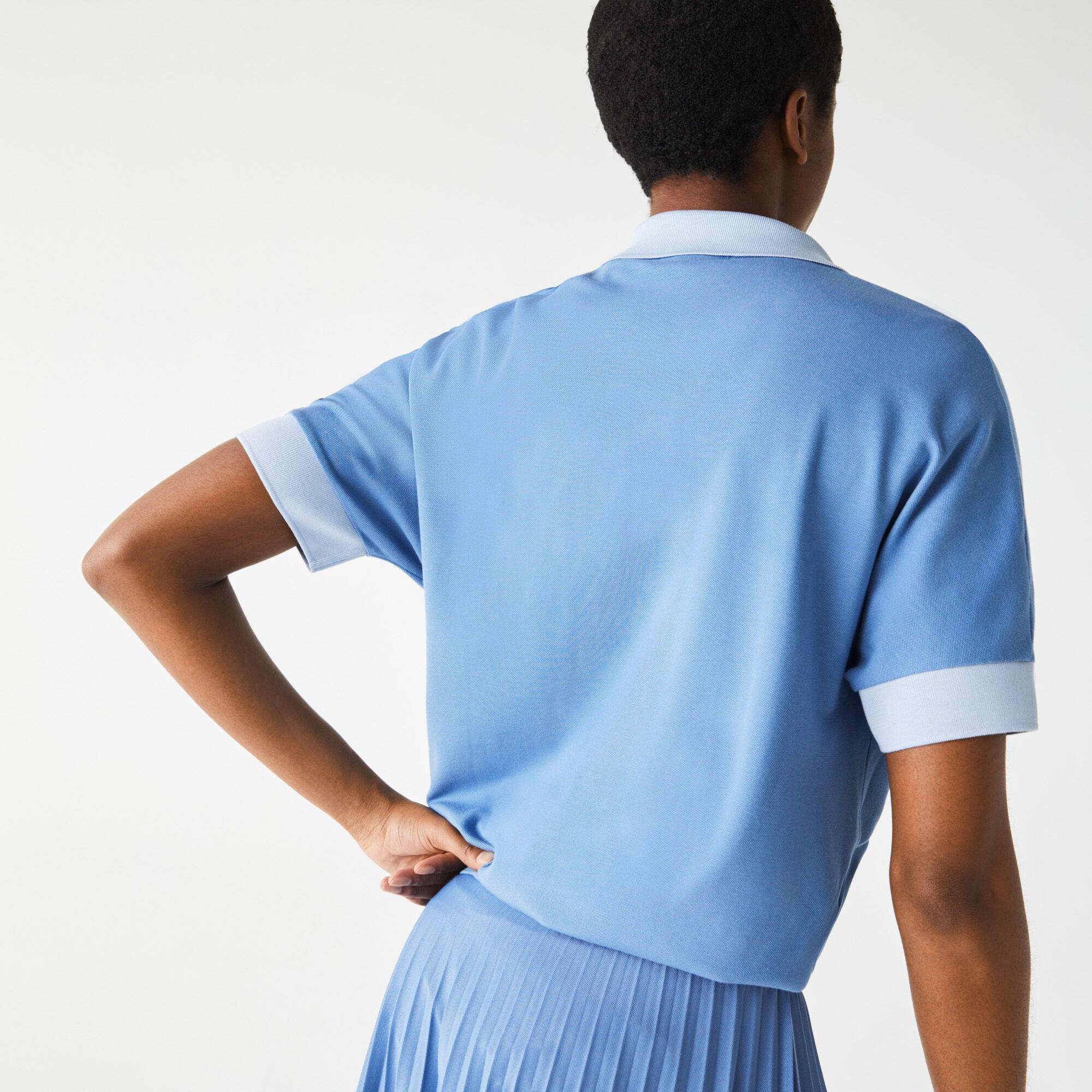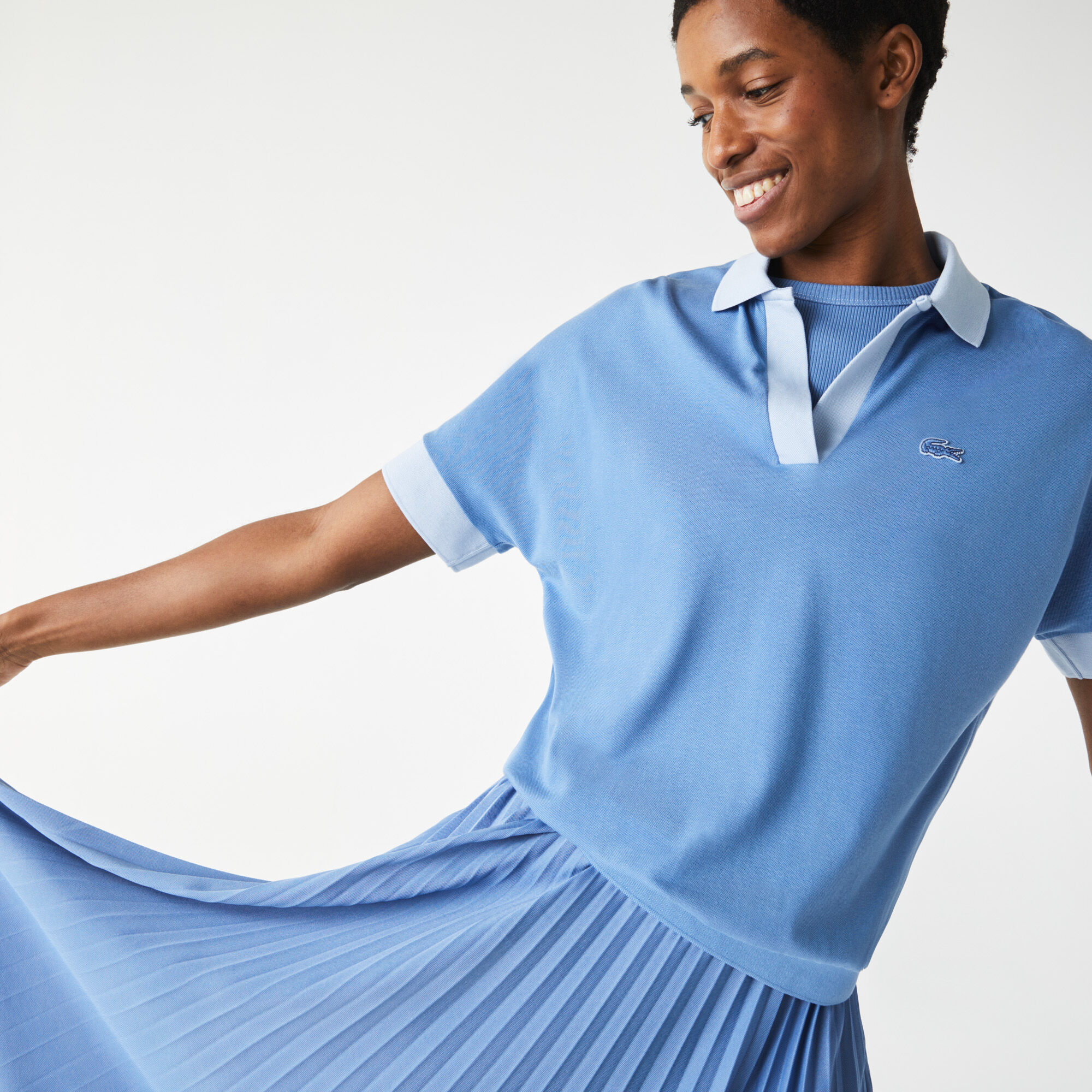 قميص بولو بيكيه انسيابي للنساء بقصة فضفاضة وياقة واسعة
