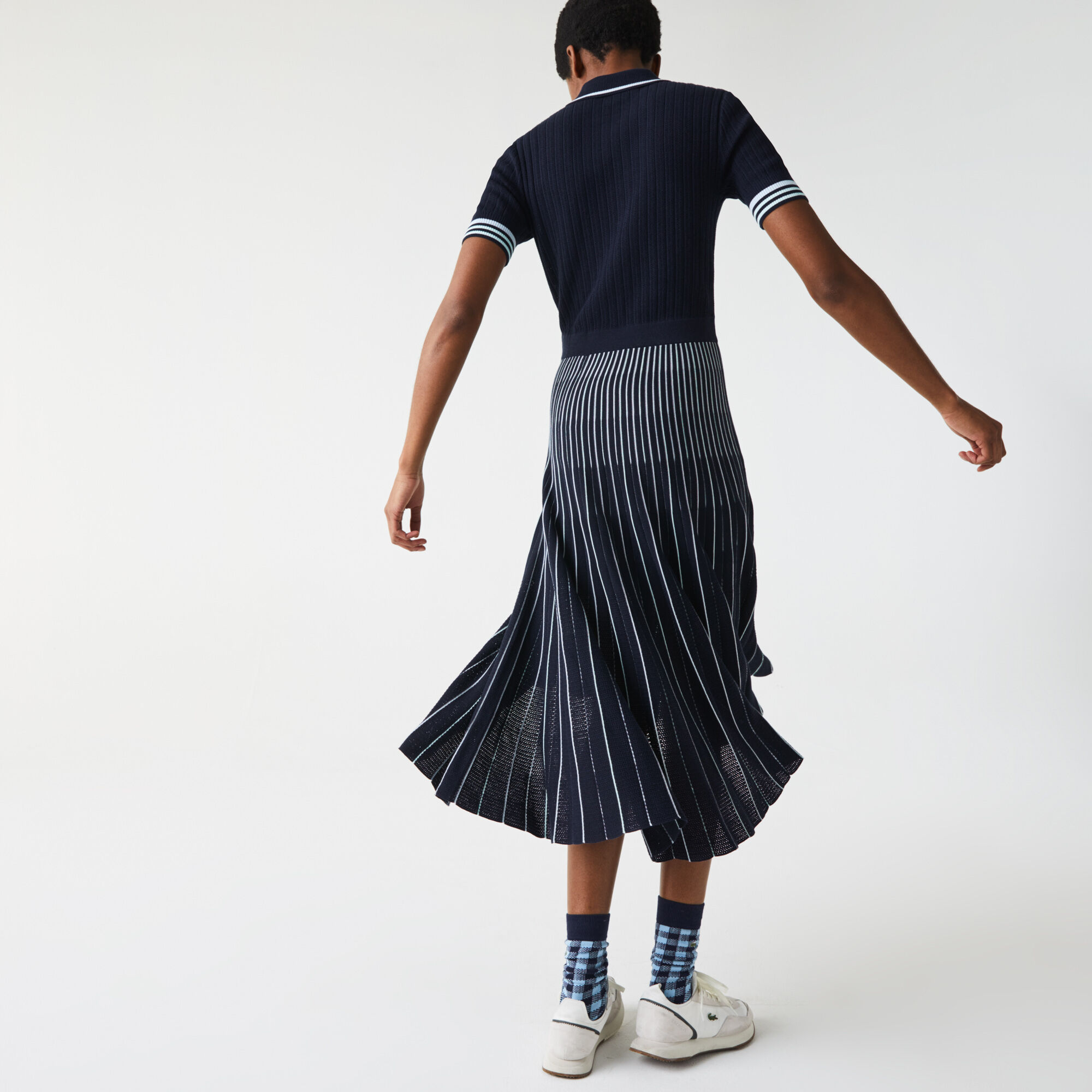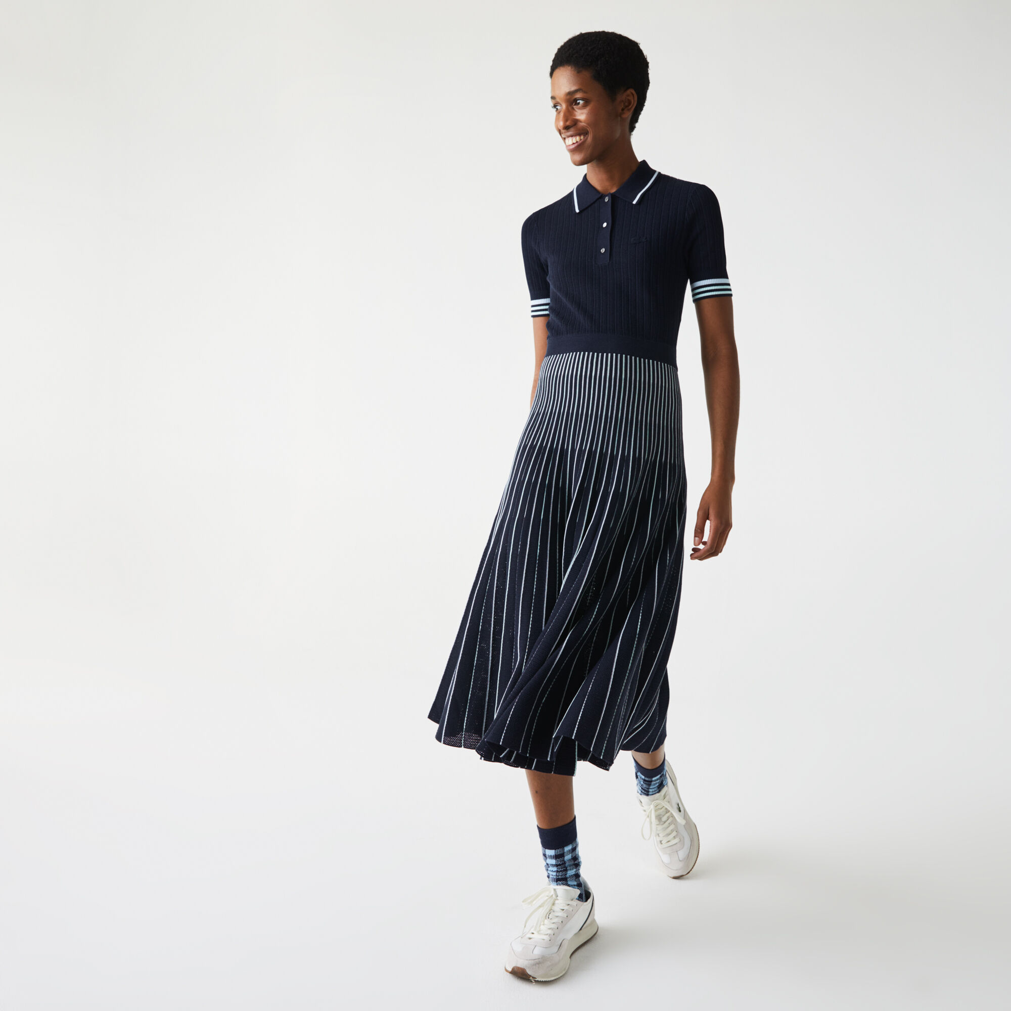 فستان بولو مع تنورة بطيات للنساء من القطن