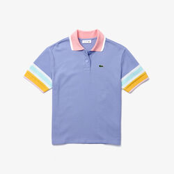 قميص بولو قطني متعرج الملمس للنساء كم مخطط