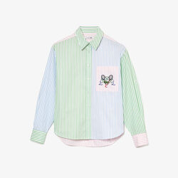 قميص قطن مخطط مقسم لأجزاء بتطريز مضارب تنس للنساء