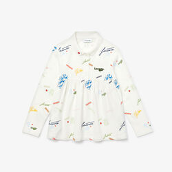 Girls' Lacoste Print Flounced Cotton Piqué Polo Shirt