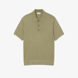 Fluid Ribbed Knit Polo Collar Sweater